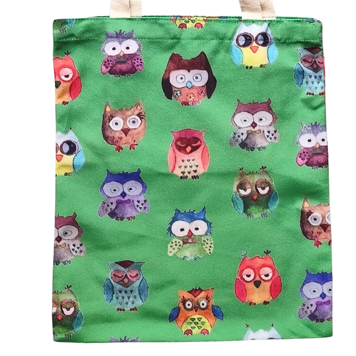 Ez a kisebb méretű vászontáska garantáltan mosolyt csal az arcokra: zöld alapon sorakoznak a különböző színű és stílusú baglyok, mintha mindegyiknek saját személyisége lenne. A játékos grafika nemcsak feltűnő, de igazán szerethető is – tökéletes választás baglyok és egyedi minták rajongóinak. A táska erős, strapabíró anyagból készült, így ideális mindennapi használatra – kisebb bevásárlásokhoz, sétákhoz, vagy ajándékba. Egy nagy, egyterű rekesszel rendelkezik, könnyen tisztítható, mosható. Termékjellemzők: Anyag: 100% poliészter Méret: kb. 34 x 38 cm Egyterű kialakítás Vidám, színes bagoly minta zöld alapon Strapabíró, könnyen tisztítható, mosható