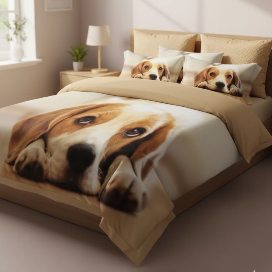 Puha, kényelmes és látványos ágynemű garnitúra, amelyet a beagle rajongók garantáltan imádni fognak. A huzaton és a párnákon megjelenő, részletgazdag kutyafotó barátságos, otthonos hangulatot teremt a hálószobában. A szett kiváló minőségű, kellemes tapintású anyagból készült, amely jól szellőzik és hosszú távon is megőrzi színeit.