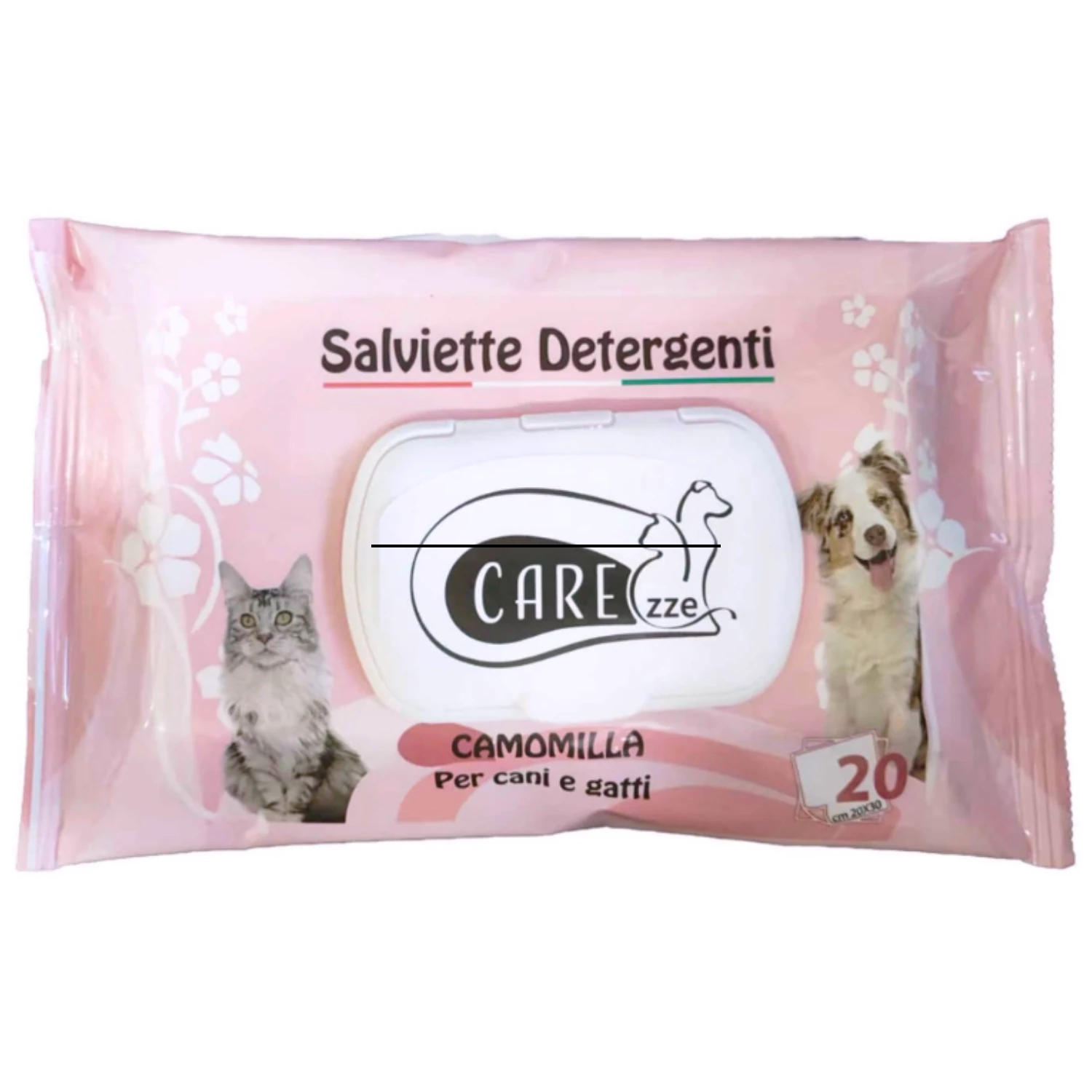 Friss, üde illat és gyengéd tisztítás egyben! A Carezze kamillás nedves törlőkendőkkel könnyedén karbantarthatod kedvenced szőrzetét, tappancsait és érzékeny testtájait – otthon, séták után vagy utazás közben.