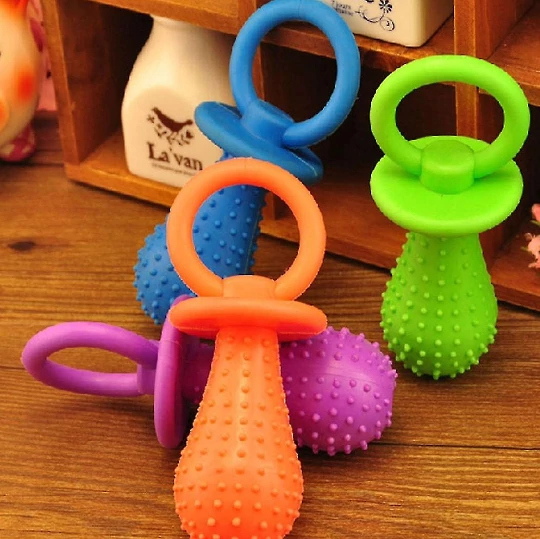 Apró csörgő cumi játék kutyáknak fogtisztító szemcsékkel.