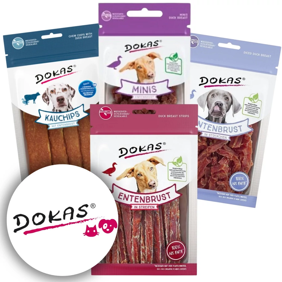 A Dokas kedvezményes kacsa jutalomfalat csomag minden egyes terméke 100% természetes alapanyagokból készült, hozzáadott mesterséges adalékanyagok és tartósítószerek nélkül. Kényeztesse kutyáját a legfinomabb kacsa csemegékkel, amelyek biztosan elnyerik tetszését!