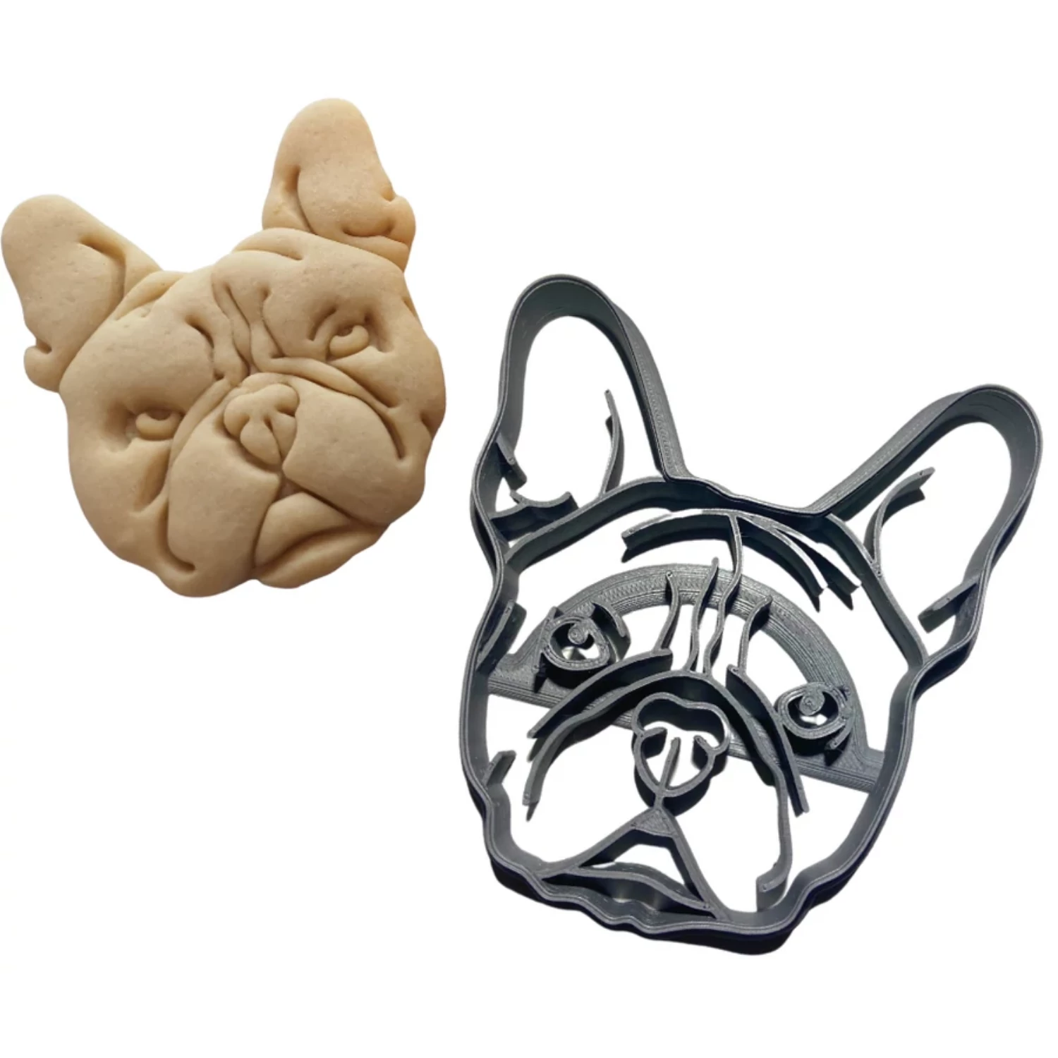 Francia bulldog fej mintás sütemény kiszúró. Díszcsomagolásban szürke színű szalaggal.