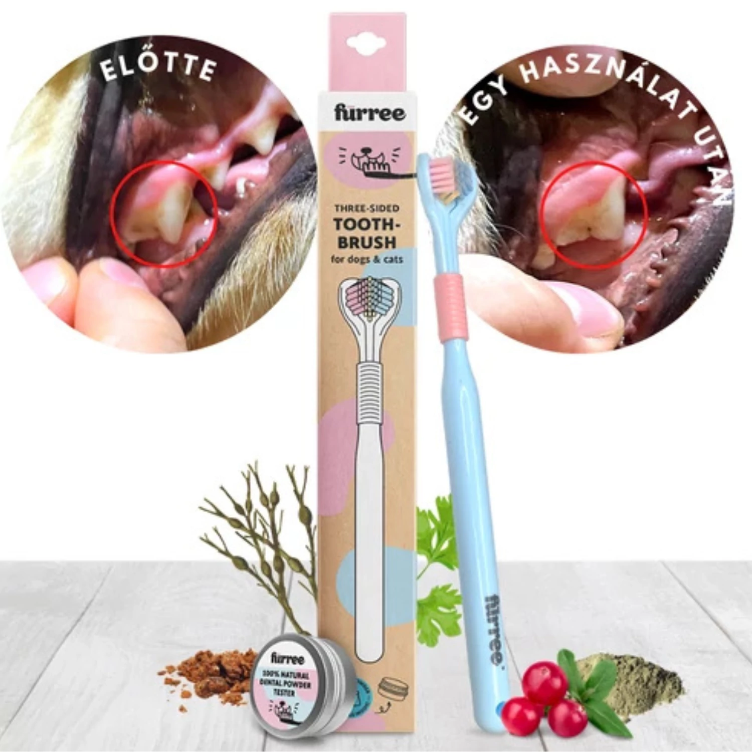 Fürree három oldalú fogkefe kutyáknak és macskáknak, ajándék fogmosó porral