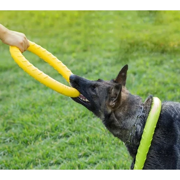 Az intenzív rágási kényszer könnyen levezethető egy edzőgyűrű segítségével. A termék erre lett kitalálva. A visszahozós játékokra, benti és kinti edzésre, a kutyus lekötésére kiválóan alkalmas. Nem műanyag!