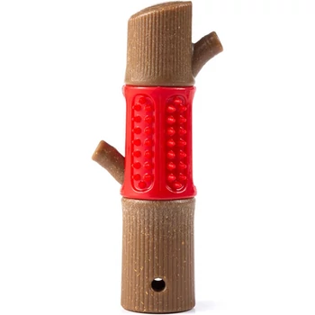 A természet által inspirált rágó kutyajáték, mely rágcsálás során nem sérti a fogakat és fogínyt. A fogtisztító játék PP,TPR és környezetbarát faforgács anyagokból készült, így rendkívül strapabíró. Hasonlóan jól bírja a rágcsálást mint egy kávéfabot vagy egy igazi szarvasagancs, de kíméli a fogakat és a fogínyt. A termék készítése során az ömlesztett anyaghoz természetes faforgácsot adnak hozzá, mely érzetre egy fa bot érzetét adja. A terméken található fogtisztító szemcsék segítenek tisztán tartani kis kedvenced fogait, eltávolítják a szennyeződéseket miközben frissítik kisállatod leheletét is. Paraméterek: