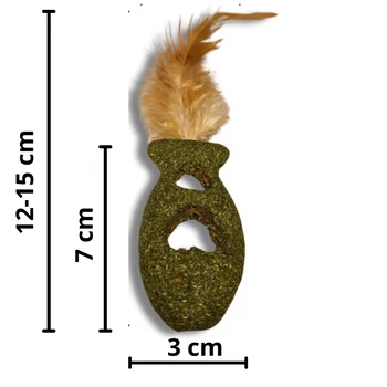 A Nunbell hal alakú macskamenta játék tollal tökéletes játék, amely ösztönzi macskád természetes vadászösztöneit és biztosítja a szórakozást. A hal átmérője 3 cm, a hozzá rögzített természetes színű tollal együtt a játék hossza 12-15 cm. A labda macskamentával (Nepeta cataria) van töltve, amely rendkívül vonzó a macskák számára, serkentve játékos, aktív viselkedésüket. A természetes tollak mozgásukban imitálják a zsákmányt, így különösen izgalmas és ösztönző lesz a macskák számára. Ez a játék ideális arra, hogy macskád levezesse energiáját, és közben fejlessze mozgáskoordinációját. Tulajdonságok: