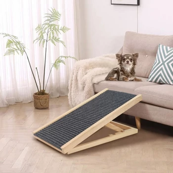 A kutyarámpa ideális választás azoknak, akik szeretnék megkönnyíteni házikedvencük mozgását, legyen szó autóba, kanapéra vagy más magasabb felületre történő fel- és lejutásról. A 100x40 cm-es méretének köszönhetően stabil és biztonságos alapot biztosít kutyája számára. A rampát fa és szövet anyagok kombinációjával készítették, így a masszív és tartós szerkezet hosszú távú használatra is alkalmas. Összecsukható, hordozható kialakítása lehetővé teszi, hogy könnyedén tárolja, és bármikor magával vigye, ha szükséges. A termék négy különböző magasságban állítható (60 cm, 50 cm, 40 cm, 30 cm), így könnyedén igazítható a kutya aktuális igényeihez. A csúszásmentes felület garantálja, hogy a kutyája biztonságosan és stabilan közlekedhet a rampán. Ez a kutyarámpa ideális megoldás a kutyája kényelméért és biztonságáért, különösen idős, sérült vagy kisebb testű kutyák számára. Főbb jellemzők: