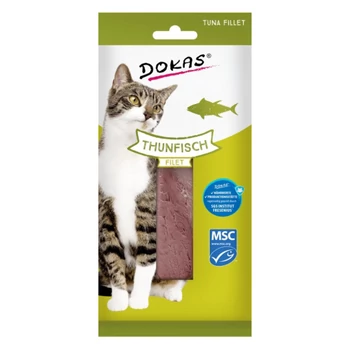 Természetes, lédús finomság macskáknak!A Dokas tonhalfilé egy kiváló minőségű, természetes csemege, amely minden cicának ellenállhatatlan ízélményt nyújt. 100% főtt tonhalból készül, így nemcsak ízletes, hanem könnyen emészthető is, ezért még a táplálkozásra érzékeny macskák számára is tökéletes választás. Fenntartható halászatból származik, és MSC tanúsítvánnyal rendelkezik, így nemcsak kedvencedet kényezteted, hanem a környezetre is figyelsz. Miért válaszd?✔ 100% természetes tonhalfilé – mesterséges adalékanyagok nélkül Összetétel: