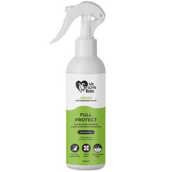 A WeLoveBark Full Protect Prebiotikus Szőrpermet egy innovatív, vízmentes megoldás kutyák szőrápolására, amely gyorsan felfrissíti a bundát, táplálja és kondicionálja a szőrszálakat, miközben segít megvédeni kutyádat a szúnyogok, kullancsok és bolhák ellen. Egyedi, prebiotikus hatóanyag-kombinációjának köszönhetően nemcsak hidratálja, hanem regenerálja is a bőrt, miközben erősíti a bőr természetes védőrétegét. A Full Protect egy igazi mindenes, amely minden szőr- és bőrtípushoz tökéletesen alkalmazható.