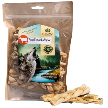 A Teomann szárított fonott marhafejbőr egy ínycsiklandó és tápláló rágcsálnivaló, amely nemcsak finom, hanem a kutyája fogainak tisztításában is segít! Ez az ehető fogkefe tisztítja a fogakat, miközben erősíti a rágóizmokat. Kiváló választás minden kutyának, aki szeret rágcsálni és élvezi az egészséges csemegéket. 100%-ban természetes, színezékek és tartósítószerek hozzáadása nélkül készült, így biztos lehet benne, hogy kutyája csak a legjobb minőségű, egészséges hozzávalókat kapja. Összetevők:
