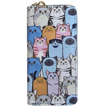 Ez a vidám és stílusos pénztárca színes, karakteres cicákkal díszített mintájával garantáltan feldobja a mindennapokat. A kék háttér jól kiemeli a különböző színű macskák játékos arcait, így a pénztárca nemcsak praktikus, hanem látványos kiegészítője is lehet a táskádnak. A pénztárca cipzárral záródik, belül pedig átgondolt elrendezés vár: 10 kártyatartó, 3 különálló zseb, valamint egy aprópénztartó zseb segíti a rendszerezést. Méretének köszönhetően kényelmesen elfér benne minden, amire a hétköznapok során szükséged lehet. Termékjellemzők: