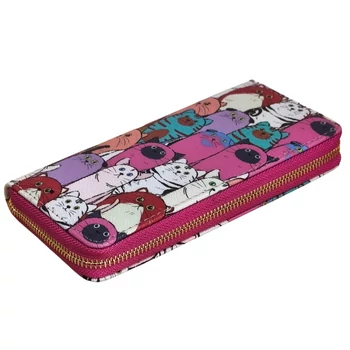 Ez a praktikus és mutatós pénztárca garantáltan mosolyt csal az arcodra minden egyes használatkor. A pink alapszínhez élénk, különféle színű cicák társulnak, akik sorban ülve néznek vissza rád a pénztárca elejéről. A játékos dizájn különösen ideális macskabarátoknak és azoknak, akik kedvelik az egyedi, színes kiegészítőket. A pénztárca cipzárral zárható, belső kialakítása pedig rendkívül jól szervezett: 10 kártyatartó, 3 külön zseb, valamint egy aprótartó zseb gondoskodik a tökéletes rendszerezhetőségről. Termékjellemzők: