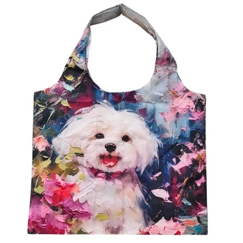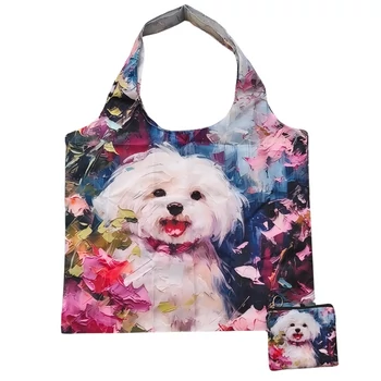 Ez a romantikus hangulatú vászontáska egy boldogan mosolygó máltai selyemkutyát ábrázol, élénk, festményszerű virágos háttérrel. Nemcsak gyönyörű, hanem praktikus is: kis méretű tokjába könnyedén összehajtható, így mindig kéznél lehet! Főbb jellemzők:
