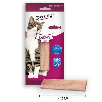 Természetes, ínycsiklandó jutalomfalat a halimádó cicáknak! A Dokas Prémium Lazacfilé 100%-ban tiszta, főtt lazacból készült, gabona- és gluténmentes snack, amely tökéletes választás táplálékérzékeny macskák számára is. Nem tartalmaz hozzáadott cukrot, szóját vagy adalékanyagokat – így valóban természetes élményt nyújt, miközben támogatja a bőr és a szőrzet egészségét az omega-3 zsírsavak révén. Főbb jellemzők: