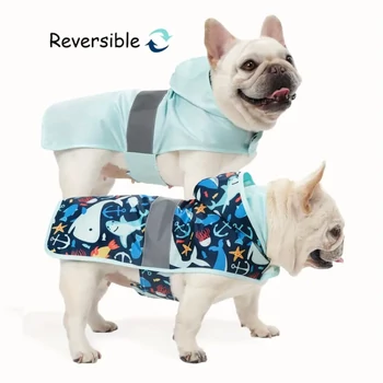 Ez a kifordítható kutyakabát nemcsak stílusos, hanem rendkívül praktikus választás is minden időjárásra! A kabát kétoldalas kialakításának köszönhetően egyszerre élvezheted a divatos, vidám tengeri mintát, valamint a letisztult, egyszínű megjelenést – hangulat vagy alkalom szerint bármikor megfordítható és újként viselhető. A vízlepergető anyag megóvja a kutyát az esőtől és széltől, miközben könnyű, kényelmes viseletet biztosít. A kapucni extra védelmet ad a fejrésznek, a fényvisszaverő sáv pedig gondoskodik a biztonságról a sötétebb időszakokban. Tökéletes választás városi sétákhoz, kirándulásokhoz vagy akár mindennapi használatra is – ez a kabát ötvözi a praktikumot, a kényelmet és a modern megjelenést. Mérettáblázat