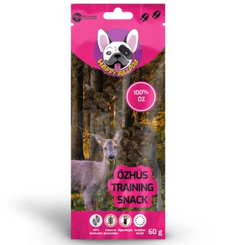 Bemutatjuk a HAPPY BULLDOG Őzhús Training Snack előnyeit – 100%-ban természetes, sovány fehérjében gazdag, tápláló őz színhús, vitaminokban gazdag belsőségek és kollagénben gazdag darált porcos csontozat keveréből készült, adalékanyagok és tartósítószerek nélkül. Csak ami a kedvenced számára a legegészségesebb! Ez a gabona- és gluténmentes rágófalat BARF étrendet követő kutyusok számára is tökéletes választás! Összetevők: 99% hús és belsőségek, 1% növényi glicerin Analitika: