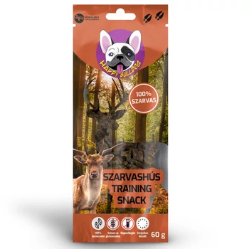 Bemutatjuk a HAPPY BULLDOG Szarvashús Training Snack előnyeit – 100%-ban természetes, sovány fehérjében gazdag, tápláló szarvas színhús, vitaminokban gazdag belsőségek és kollagénben gazdag darált porcos csontozat keveréből készült, adalékanyagok és tartósítószerek nélkül. Csak ami a kedvenced számára a legegészségesebb! Ez a gabona- és gluténmentes rágófalat BARF étrendet követő kutyusok számára is tökéletes választás! Összetevők: 99% szarvashús és belsőségek, 1% növényi glicerin Analitika: