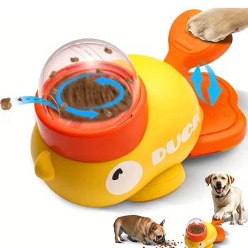 Vidám, kacsás etetőjáték, ami egyszerre lassítja a falánk kutyák evését és lefoglalja őket mentálisan. A kutya a kacsa farkára lépve jutalomfalatot vagy száraztápot „nyer” a tartályból. Fő előnyök: