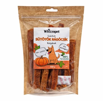 Letisztult összetétel, ami a rostokra építA sütőtök természetes módon tartalmaz rostokat, ezért a rágócsík hozzájárulhat az emésztés támogatásához. A guarmagliszt (2%) technológiai és funkcionális szerepet kap: segít a csík egységes állagának kialakításában, és szintén oldható rostforrásként ismert összetevő. Állag: rágásra ösztönöz, de kíméletesA sütőtök rágócsík nem “keksz-szerűen roppanós” és nem is puha falat: rágás közben inkább rugalmas, enyhén gumis, ami sok kutyánál: