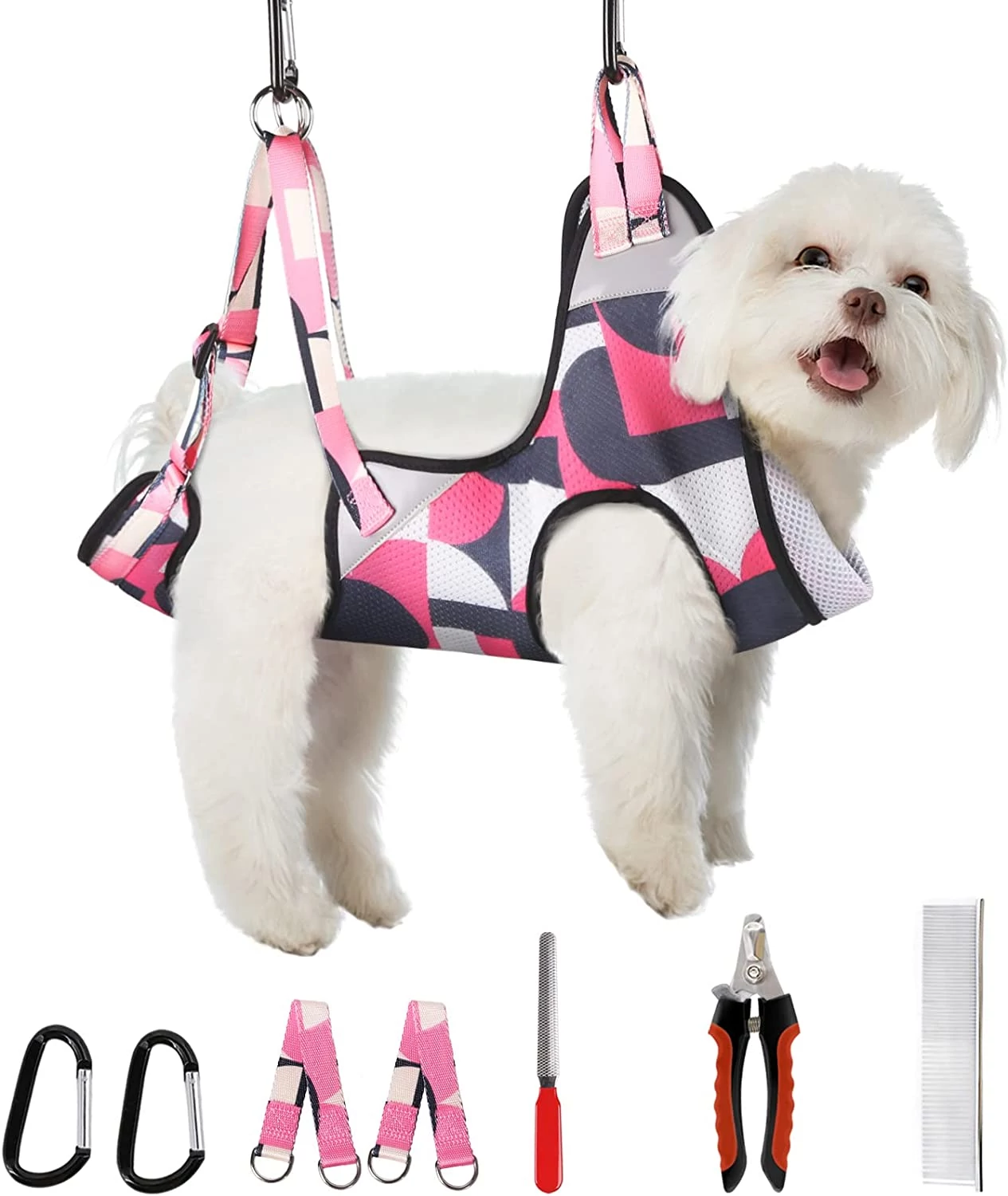 A függőágyas kozmetikai szett pont az ilyen helyzetekre lett kitalálva. Alapvetően az összes kutyakozmetikus is ezt a szettet használja. Hogy miért? Kisállatod nyugodt, kényelmes hason fekvő tartásban tudja várni ficánkolás nélkül a kezelést. Neked pedig mindkét kezed szabad. Gyorsan és hatékonyan tudsz dolgozni, és nem kell folyamatosan azon aggódnod, hogy kisállatod meglóg előled.