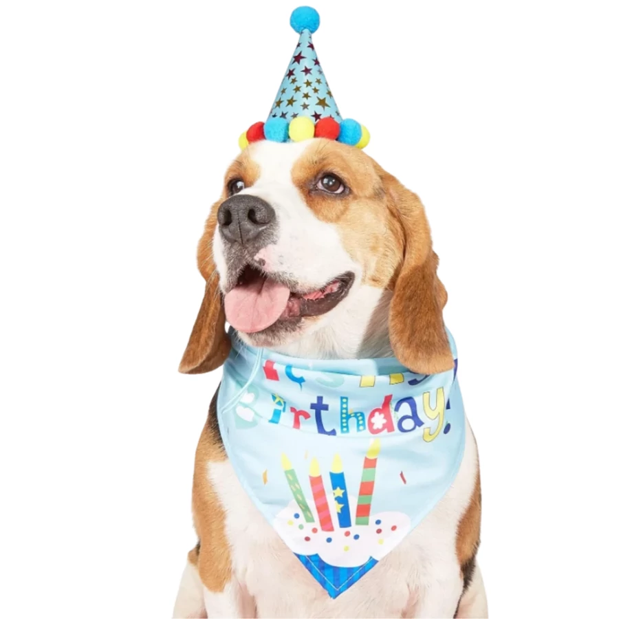 Kutya Születésnapi szett, fiús (kék), kendő + csákó