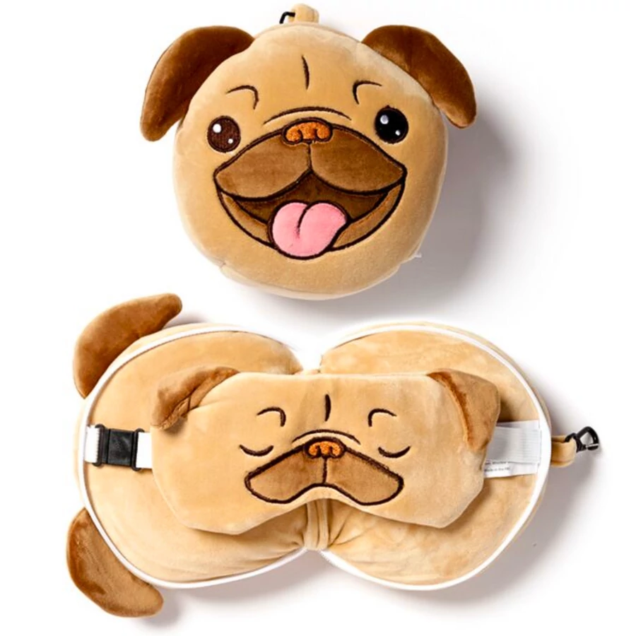 Egy igazi mopsz rajongónak tökéletes ajándék ez a plüss utazópárna szemmaszkkal. Puha, kényelmes, prémium anyagból készült.