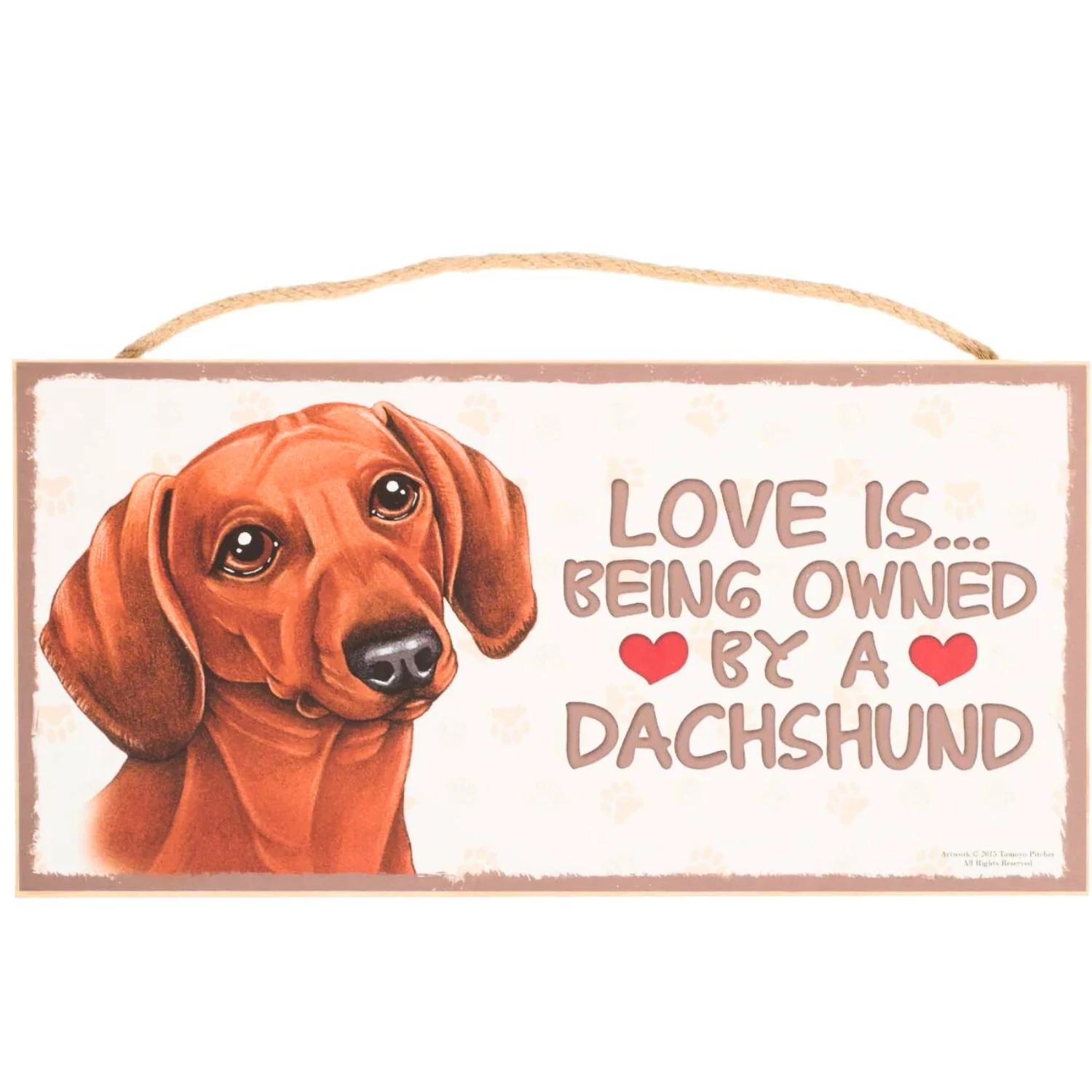 Prémium fa tábla, barna tacskó mintás