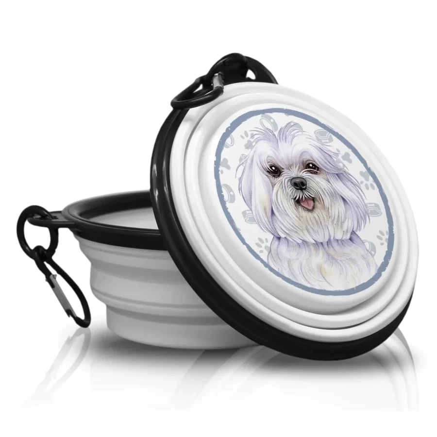 A hordozható, összecsukható kisállat tál az egyik legpraktikusabb napjainkban kapható eszköz a hosszú túrákat és sétákat preferáló gazdik számára. Máltai selyemkutya mintájával egyszerre különleges és hasznos.