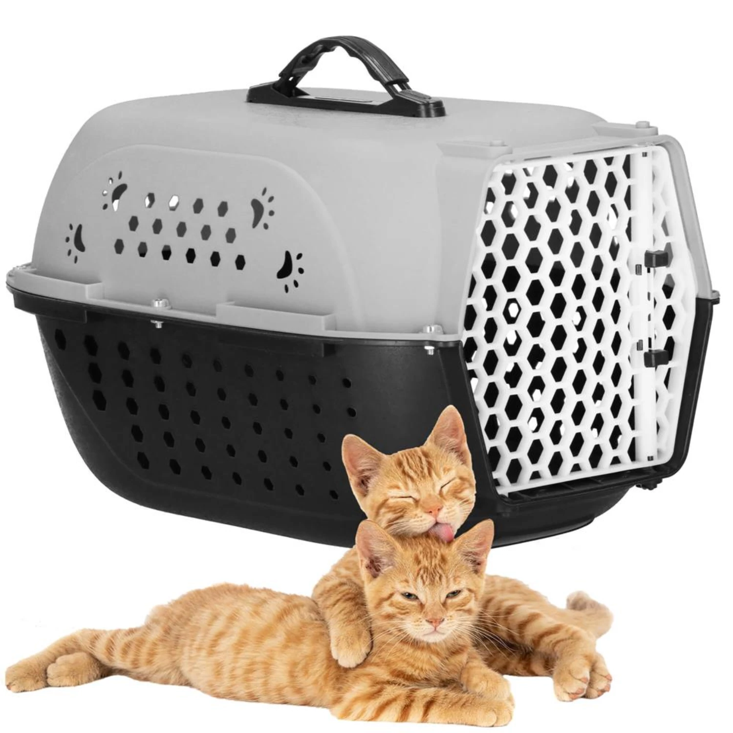 Praktikus műanyag szállítóbox macskáknak, kis testű kutyáknak vagy nyulaknak. Stabil, könnyen összeszerelhető kialakítás, biztonságos rögzítéssel és kényelmes hordozófogantyúval. Ideális állatorvoshoz, utazáshoz vagy rövid szállításokhoz.