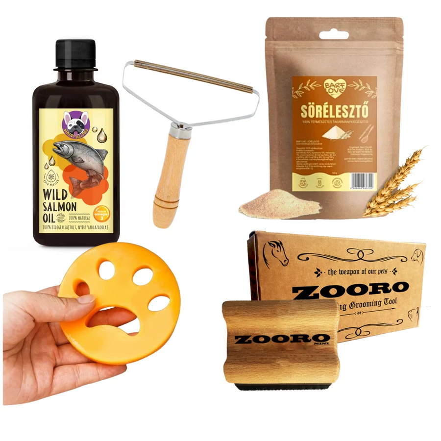 A szőrhullás problémát jelent főleg ha kisállatod benti kutya akivel egy háztartásban éltek. Ebben a csomagban megtalálsz minden általunk javasolt terméket, melyekkel hatékonyan felveheted a harcot a szőrhullás ellen mind aktív (szőrhullás megelőzés) mind passzív (szőr összeszedés, eltávolítás) értelemben.