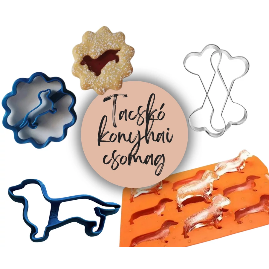 Ez a Tacskó Mintás Konyhai Sütőforma Csomag tökéletes választás minden sütés- és csokoládékészítés-rajongónak. A készlet különféle formákat tartalmaz, amelyek ideálisak sütemények, csokik és más finomságok elkészítéséhez, mindezt egyedi tacskó mintával. A sütőformák kiváló minőségű anyagból készültek, amely biztosítja a könnyű tisztítást és tartósságot, valamint azt, hogy a sütik és édességek mindig tökéletes formában kerüljenek ki a konyhából.