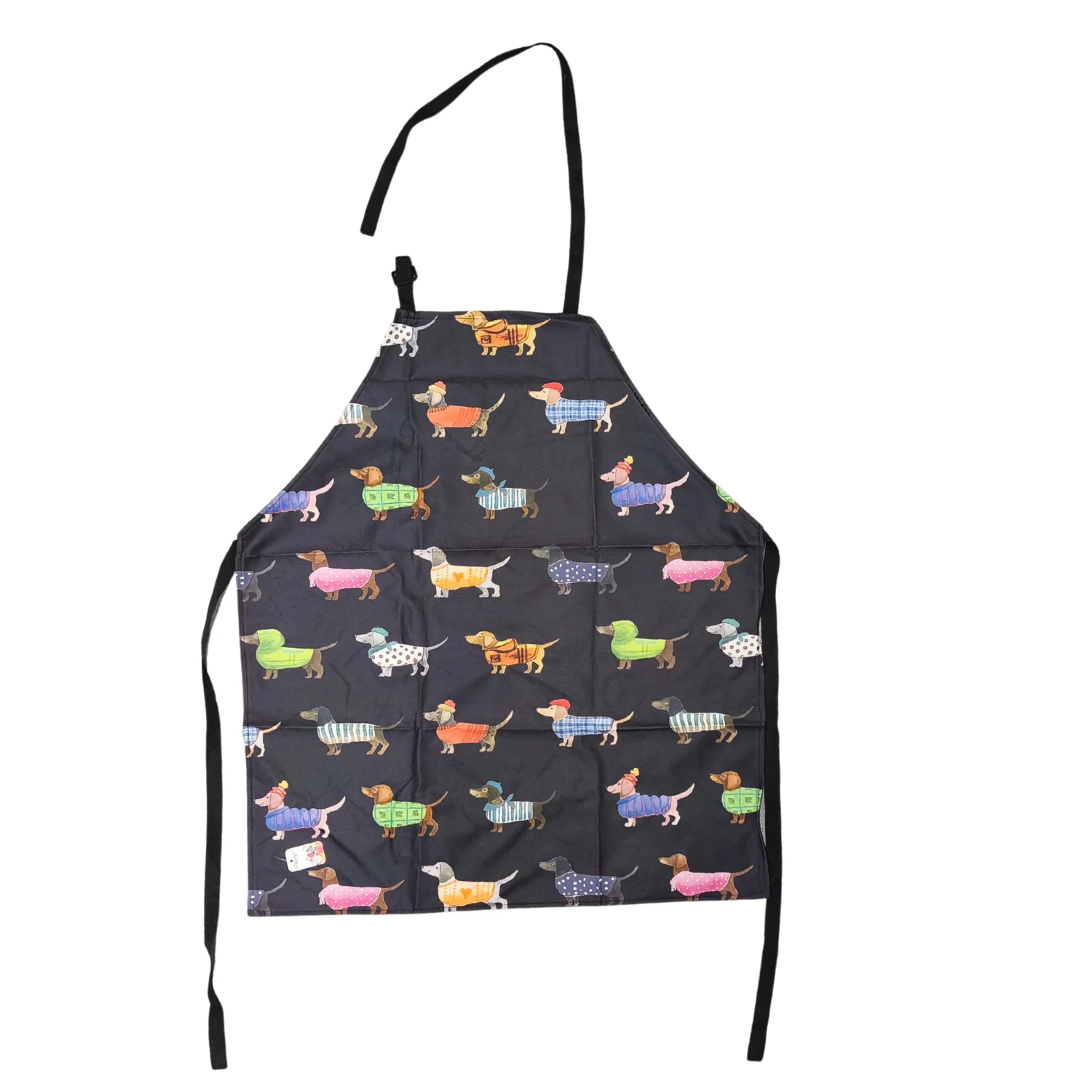 Ha már úgyis te vagy a család „konyhafőnöke”, akkor miért ne tennéd stílusosan? Ez a tacskó mintás fekete felnőtt kötény nem csak praktikus, hanem feldobja a főzést, a sütést – és garantáltan mosolyt csal mindenki arcára, aki ránéz.